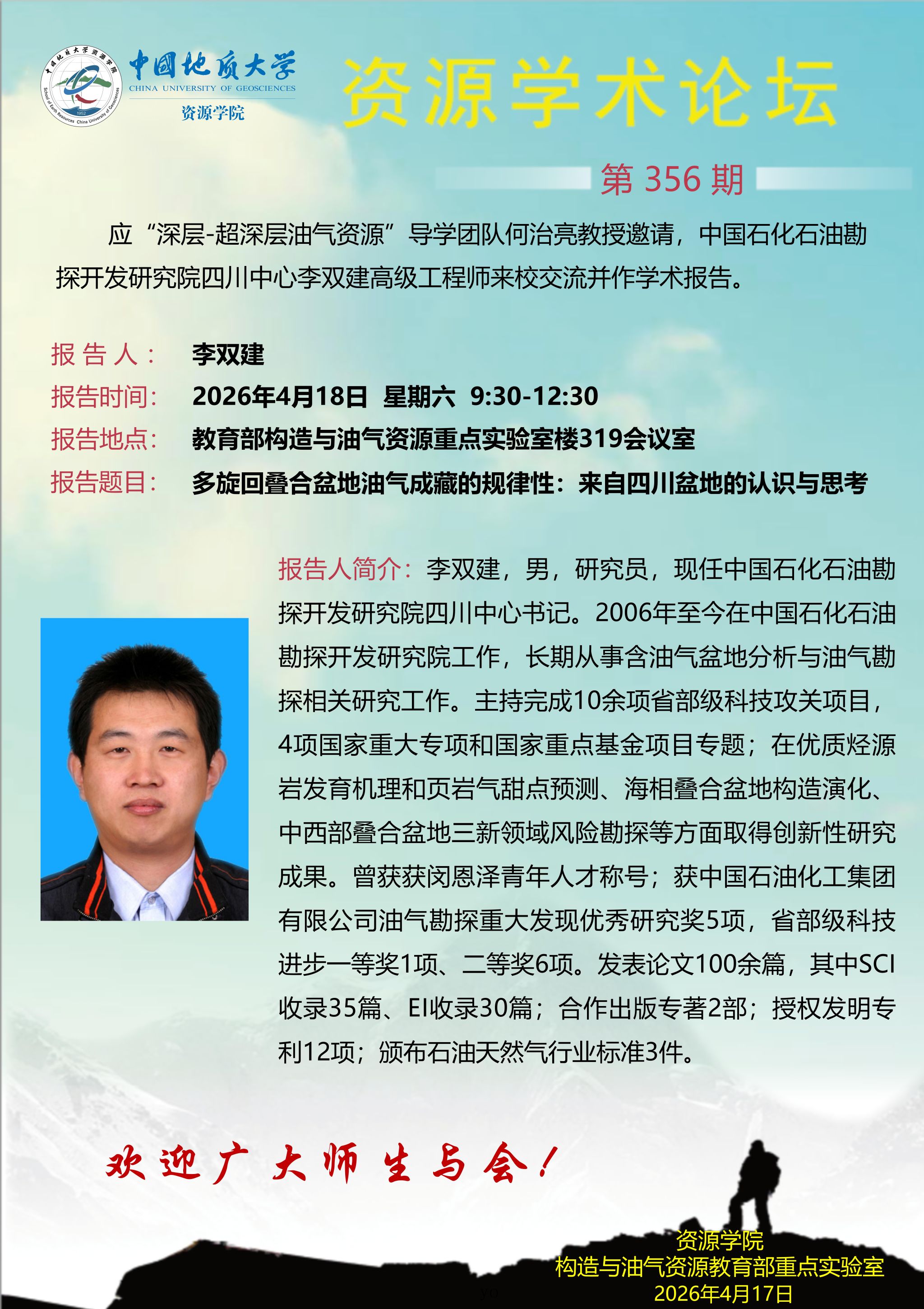 【4月18日】第356期资源学术论坛:李双建学术报告