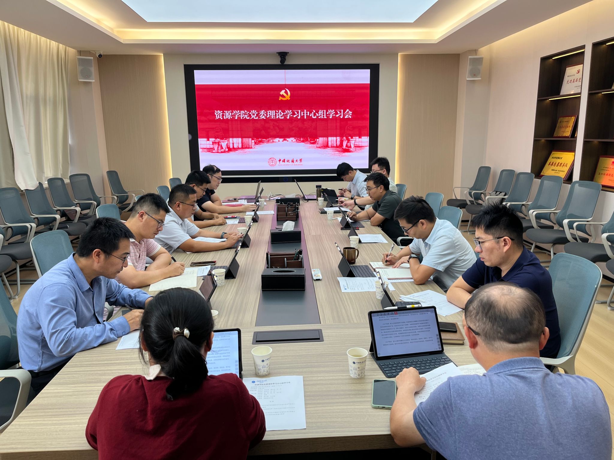 汪再奇领学习近平在听取新疆维吾尔自治区党委和政府工作汇报时的重要讲话精神,领学《中国地质大学 (武汉)促进干部担当作为行动计划》,传达学校《关于国庆、中秋期间严格落实中央八项规定精神、从严纠治“四风”的工作提示》。