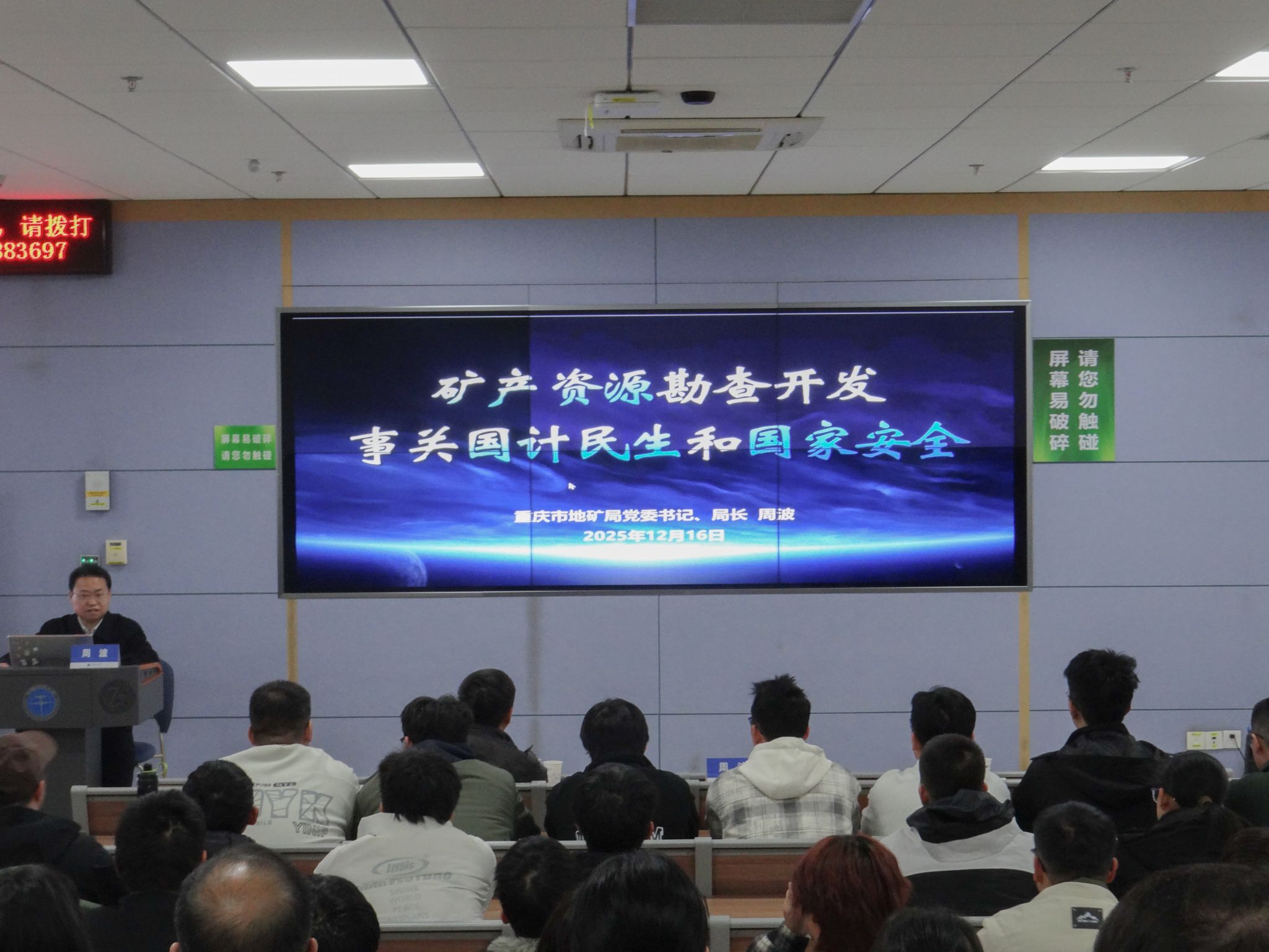 为弘扬地质工作优良传统,引导青年学子树立专业报国志向、明晰行业发展方向,12月16日,资源学院于东教C座C0206教室举办2025年秋季学期地质找矿先进事迹报告会。重庆市地质矿产勘查开发局党委书记、局长周波受邀主讲,重庆市地质矿产勘查开发局相关领导、专家,资源学院党委副书记谭文伦,辅导员彭鑫、陈宇及学生代表参会。谭文伦主持会议。