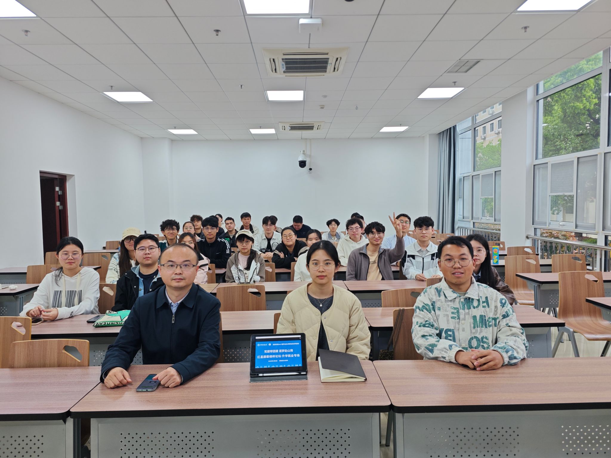 辅导员刘睿作动员讲话。她结合学生当前学业阶段特征与成长发展诉求,引导同学们深入思考自身定位与未来方向。她指出,本次分享会为即将进入大四年级的学生提供了明确发展目标、破解成长困惑的参考,鼓励大家主动提问、积极探索,把握成长机遇。