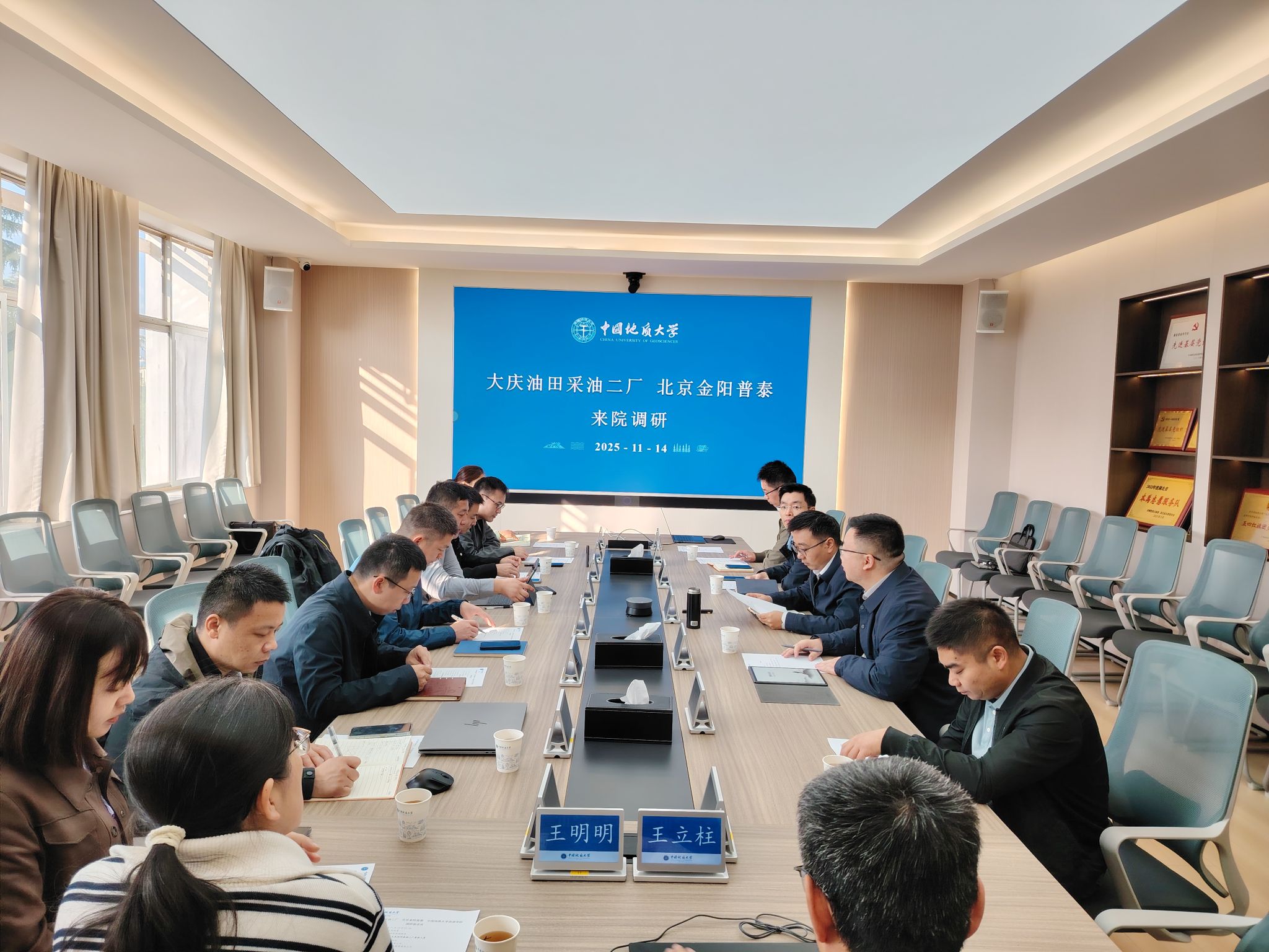11月14日,大庆油田采油二厂地质研究所副所长吴科俭、北京金阳普泰石油技术股份有限公司总经理袁钢辉一行来院调研,三方围绕进一步深化务实合作举行座谈交流。资源学院党委书记汪再奇、副院长钟志,三方单位相关部门负责人及教师代表参加座谈。钟志主持会议。