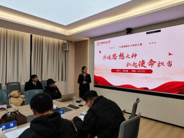 本次大赛共有来自学院14个学生党支部的19名入党积极分子参加。展示分为两个环节:首先,选手围绕个人成长经历、入党动机、对党的认识等方面进行4分钟的自我陈述与PPT展示;随后,评委结合选手表现进行现场提问与综合评价。参赛同学们结合自身在思想理论学习、学业科研、志愿服务等方面的实践,生动讲述了在党组织培养下的成长与收获,真挚表达了对党组织的向往与承诺,充分展现了新时代青年积极向上、向党组织靠拢的蓬勃风貌。