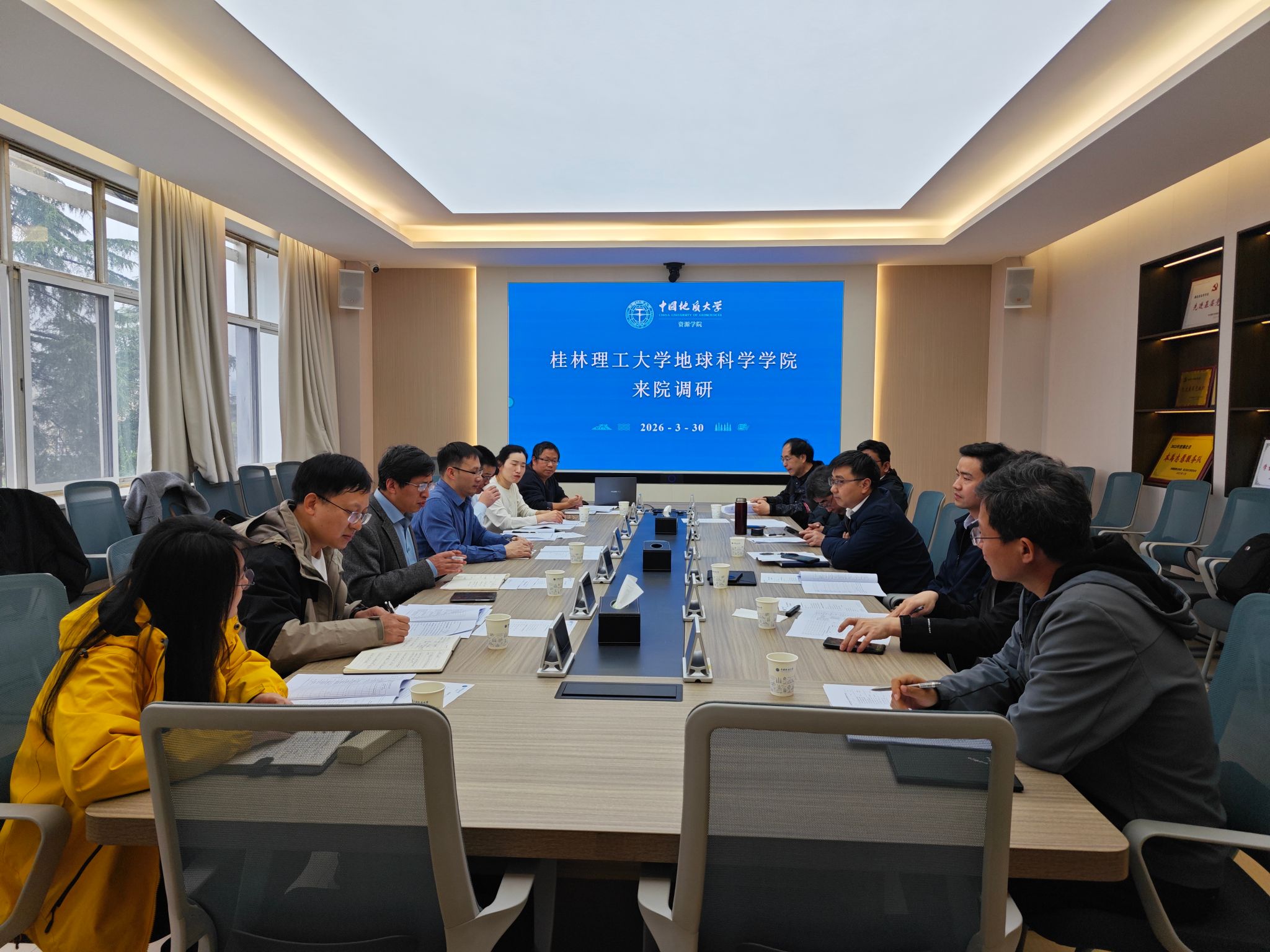 会上,庞崇进、刘泽瑞分别介绍了各自学院的基本情况与发展特色。与会双方围绕人才培养、教育教学、学科建设、实习实践等方面展开讨论,重点探讨了课程体系优化与人才培养模式,围绕地质学基础与人工智能、大数据深度融合、加强校企协同、探索“行业反哺教学”路径、优先采用开源平台推进教学资源建设等方面分享经验。在科研与学科建设方面,双方就地学与人工智能的结合定位、“个人+科研团队”双轨考核模式、博士点申报、留学生培养、本科导师制以及大学生双创等方面进行深入交流。