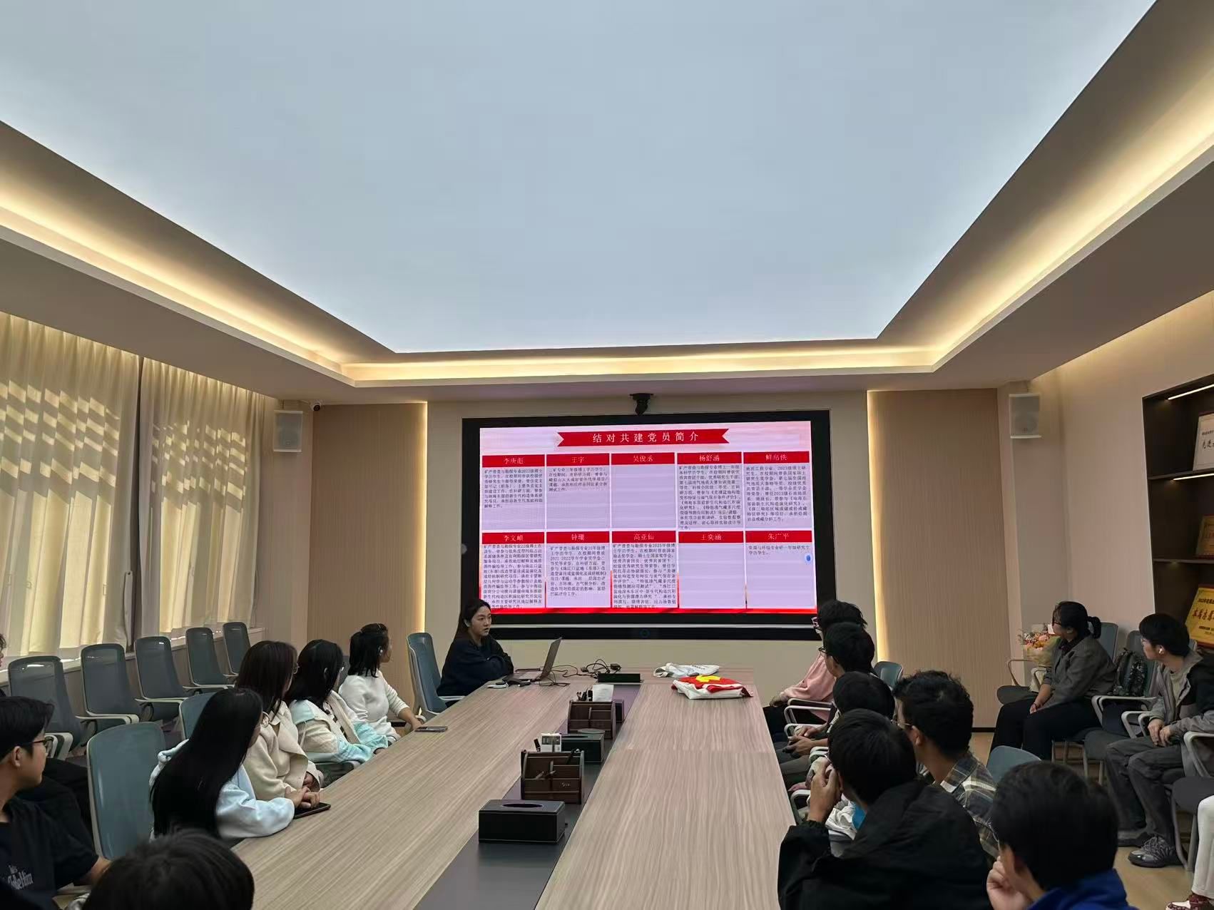 随后,她逐一介绍结对共建党员基本情况。这批党员中既有科研一线的学术骨干,也有品学兼优的博士研究生。他们将立足“党团共建六个一工程”,在思想引领、学业辅导、生涯规划等方面为团支部成员提供常态化、精准化的帮扶与指导。