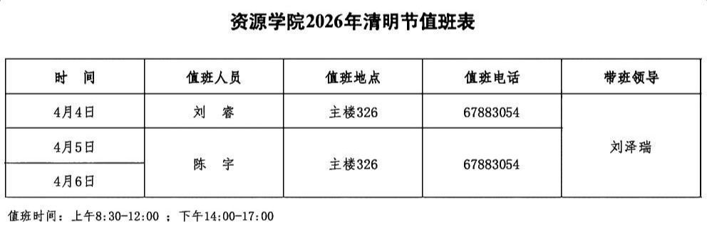 资源学院2026年清明节值班表